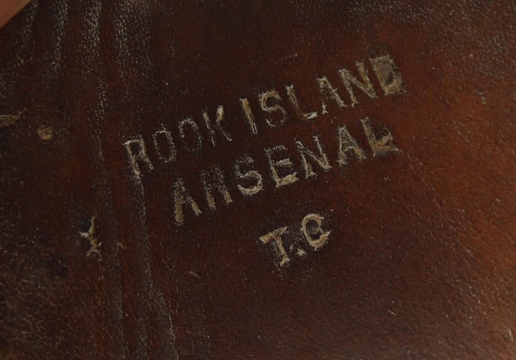 Marked Rock Island Arsenal. 11-1/2" seat. No cinch, with stirrup and leathers. In aged condition.