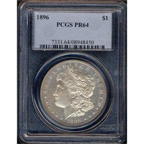 <b>1896 Morgan Dollar. PCGS graded Proof 64.</b> The silvery hue races outwards and back again between levels of frost and mirror bright surface. Lustrous and well struck with rocking-fresh quality for a middle-range Proof 64 specimen, we see that all devices are struck with exactitude <b>(PCGS # 7331)</b> <i>