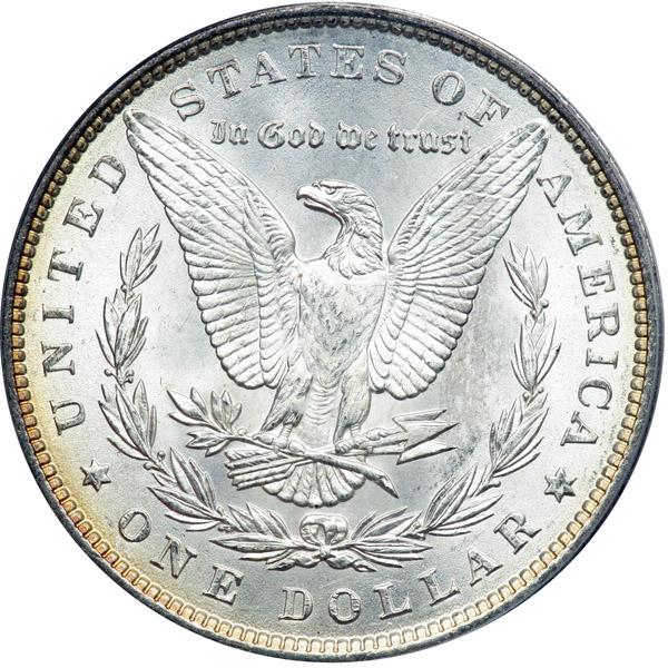 1896 Morgan Dollar. PCGS graded MS-66. The obverse displays lovely pastel multi-dimensional toning while the reverse is totally white. Pop 675; 38 finer (PCGS # 7240) .