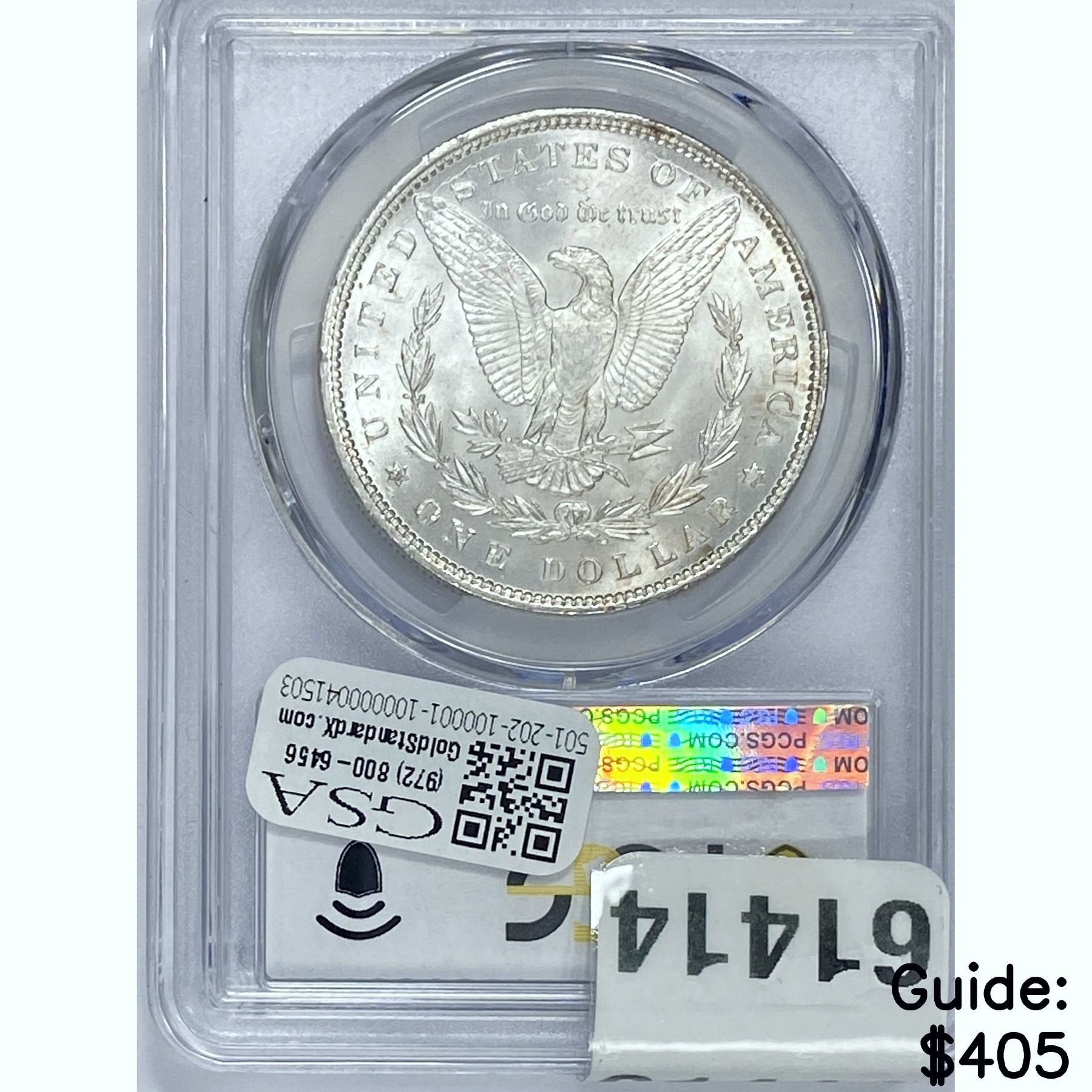 e. Coins sold referencing a third-party grading service are sold “AS IS” without any express or implied warranty, except for a guarantee by GSA that they are genuine. Removal or alteration of the holder, voids all of Bidder’s claims concerning that Product. Certain warranties may be available from the grading services and Bidders are referred to them for further details: Numismatic Guaranty Corporation (NGC), PO Box 4776, Sarasota, FL 34230, www.ngccoin.com/services/writtenguarantee.asp; Professional Coin Grading Services (PCGS), PO Box 9458, Newport Beach, CA 92658, www.pcgs.com/guarantee.html; ANACS, 6555 S. Kenton St., Ste. 303, Englewood, CO 80111; and Independent Coin Grading Co. (ICG), 7901 East Bellview, Ave., Suite 50, Englewood, CO 80111.