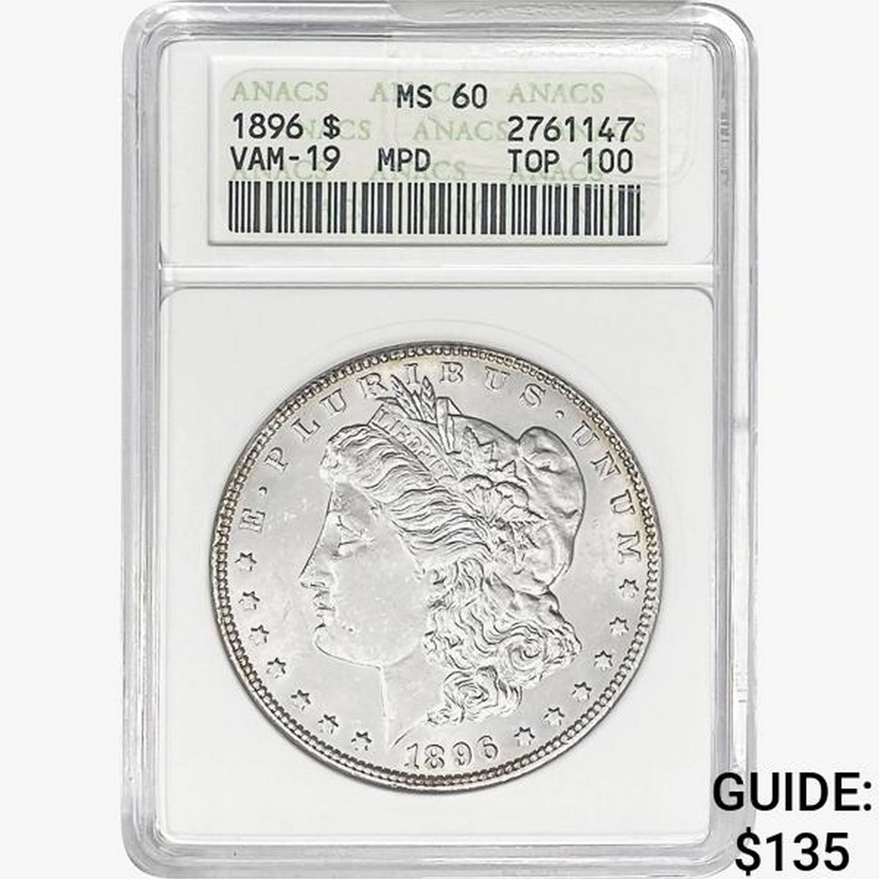 1896 Morgan Silver Dollar ANACS MS60