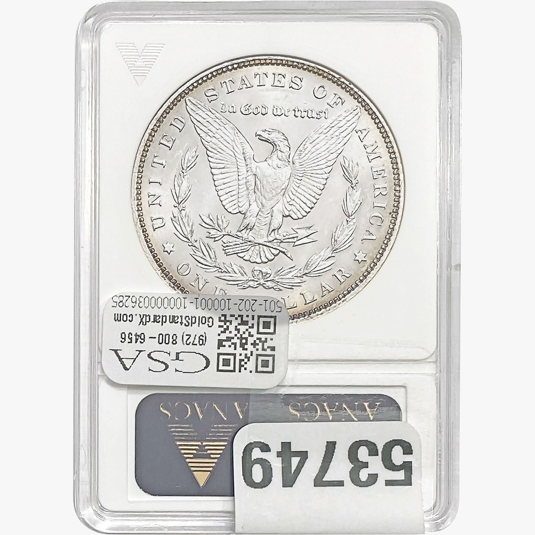 COINS AND CURRENCY LISTED IN GSA’S CATALOG AS GRADED AND ENCAPSULATED BY PCGS, NGC, ANACS, ICG, PCGS CURRENCY, PMG, PCGS BANKNOTE GRADING, CMC OR ANY OTHER THIRD-PARTY GRADING SERVICE ARE LIKEWISE SOLD “AS-IS” EXCEPT AS EXPRESSLY SET FORTH HEREIN. ALL THIRD-PARTY GRADING SERVICE GUARANTEES, INCLUDING AUTHENTICITY, ARE THE SOLE RESPONSIBILITY OF THE THIRD-PARTY GRADING SERVICE AND NOT WARRANTIES OR GUARANTEES OF GSA. BIDDERS SHOULD CONTACT THESE THIRD-PARTY GRADING SERVICES DIRECTLY WITH RESPECT TO ANY CLAIMS OR QUESTIONS THEY MAY HAVE CONCERNING THEIR GUARANTEES AND WARRANTIES. BIDDERS ACKNOWLEDGE AND AGREE THAT AUCTIONEER IS NOT BOUND BY OR LIABLE FOR ANY OPINION OR CERTIFICATION BY ANY THIRD-PARTY GRADING SERVICE. REMOVAL OF A PRODUCT FROM ITS PROTECTIVE CASING OR HOLDER OR ALTERATION OF ANY COIN HOLDER WAIVES ALL RIGHTS CONCERNING THE PRODUCT CONTAINED THEREIN.