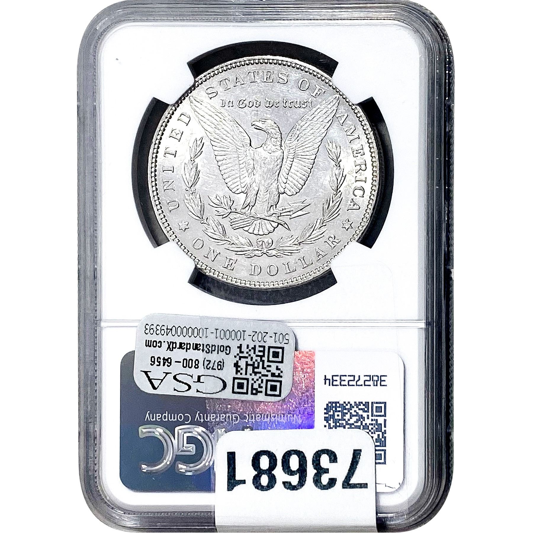 e. Coins sold referencing a third-party grading service are sold “AS IS” without any express or implied warranty, except for a guarantee by GSA that they are genuine. Removal or alteration of the holder, voids all of Bidder’s claims concerning that Product. Certain warranties may be available from the grading services and Bidders are referred to them for further details: Numismatic Guaranty Corporation (NGC), PO Box 4776, Sarasota, FL 34230, www.ngccoin.com/services/writtenguarantee.asp; Professional Coin Grading Services (PCGS), PO Box 9458, Newport Beach, CA 92658, www.pcgs.com/guarantee.html; ANACS, 6555 S. Kenton St., Ste. 303, Englewood, CO 80111; and Independent Coin Grading Co. (ICG), 7901 East Bellview, Ave., Suite 50, Englewood, CO 80111.