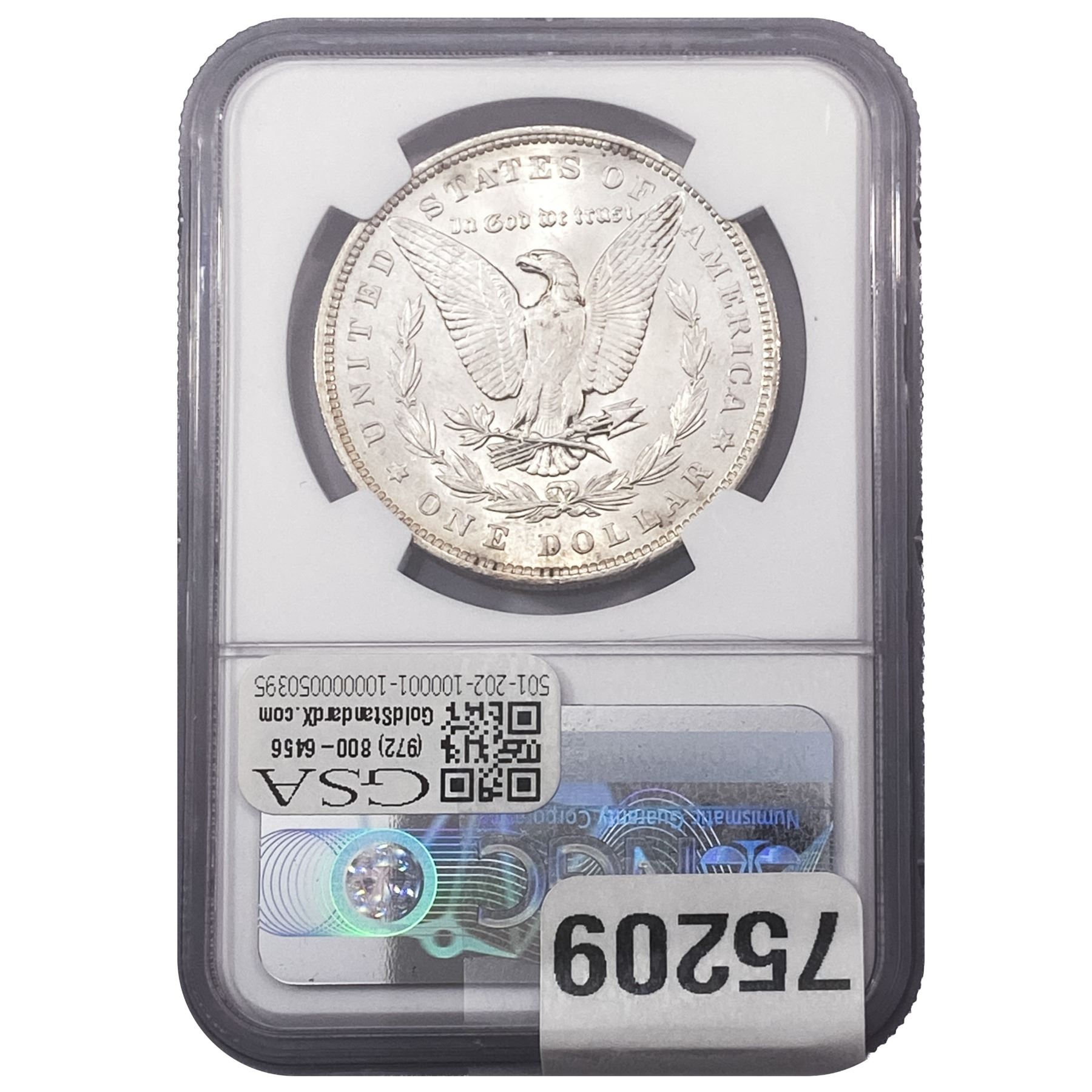 e. Coins sold referencing a third-party grading service are sold “AS IS” without any express or implied warranty, except for a guarantee by GSA that they are genuine. Removal or alteration of the holder, voids all of Bidder’s claims concerning that Product. Certain warranties may be available from the grading services and Bidders are referred to them for further details: Numismatic Guaranty Corporation (NGC), PO Box 4776, Sarasota, FL 34230, www.ngccoin.com/services/writtenguarantee.asp; Professional Coin Grading Services (PCGS), PO Box 9458, Newport Beach, CA 92658, www.pcgs.com/guarantee.html; ANACS, 6555 S. Kenton St., Ste. 303, Englewood, CO 80111; and Independent Coin Grading Co. (ICG), 7901 East Bellview, Ave., Suite 50, Englewood, CO 80111.