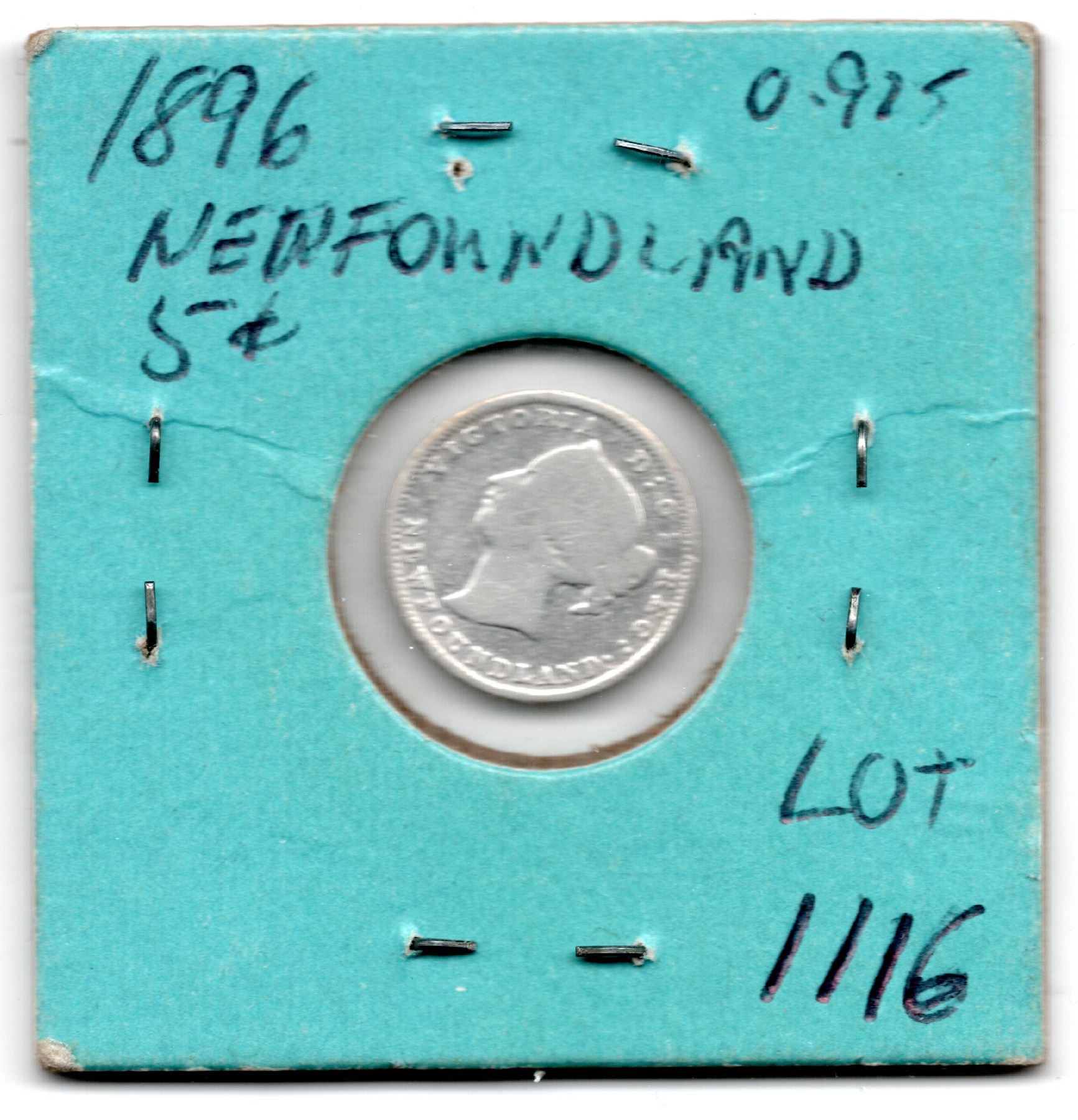 1896 NEWFOUNDLAND FIVE CENT SILVER