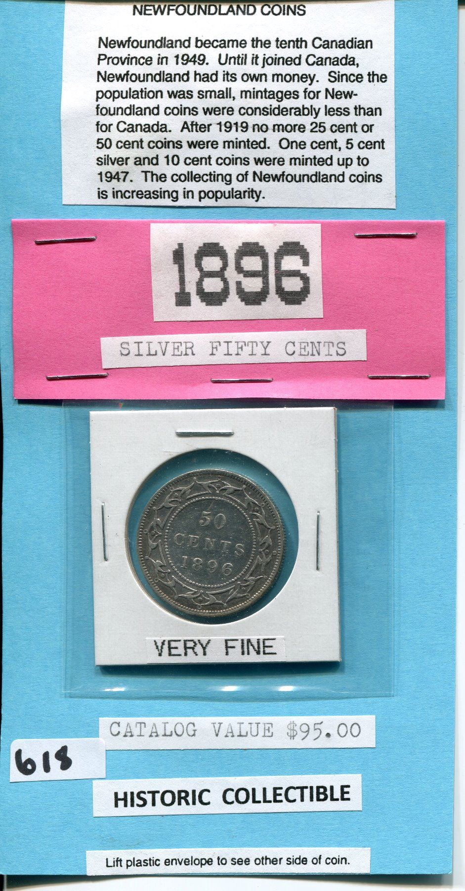 1896 NEWFOUNDLAND SILVER 50 CENT PC HISTORIC COLLECTIBLE