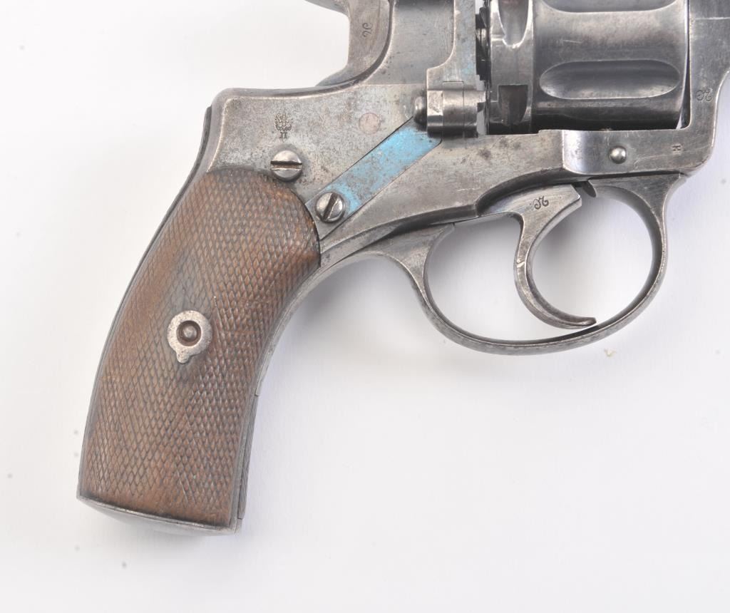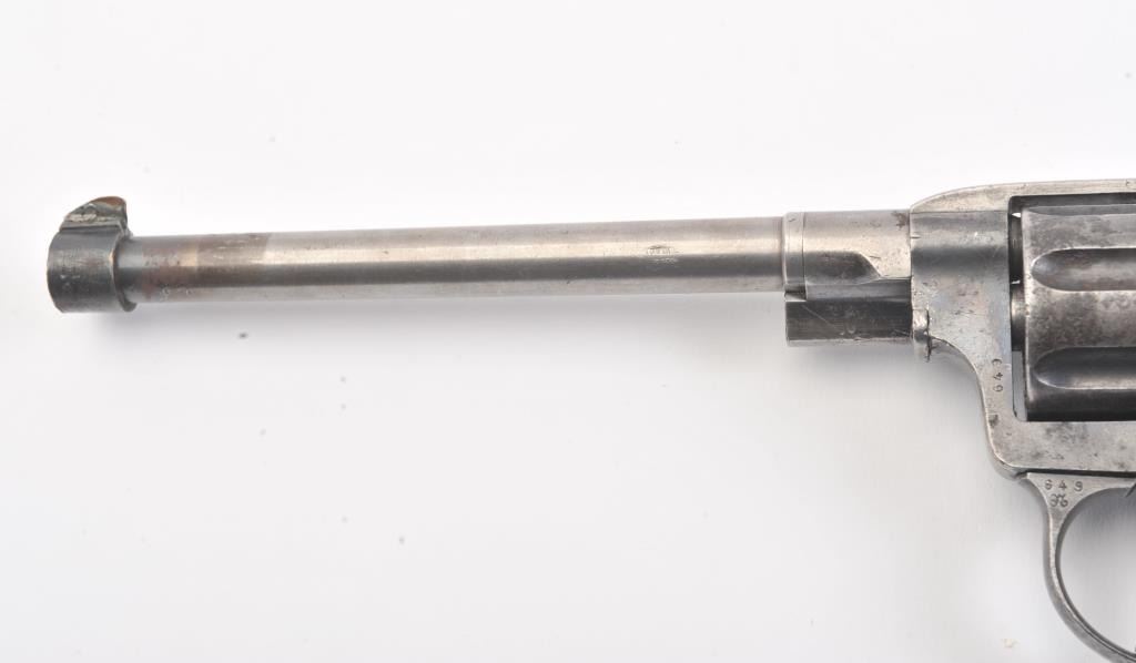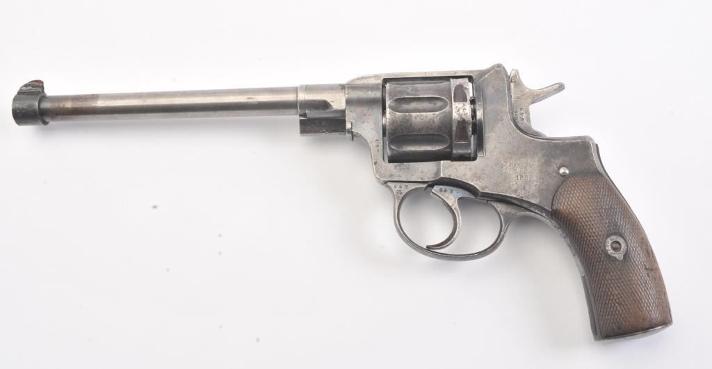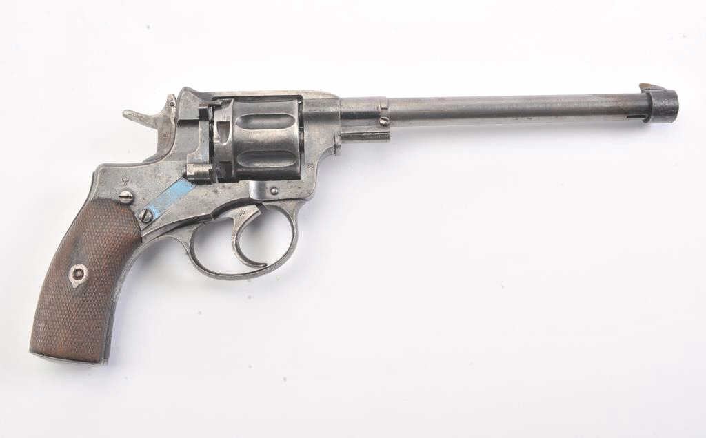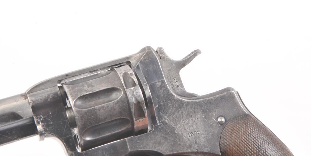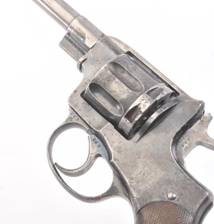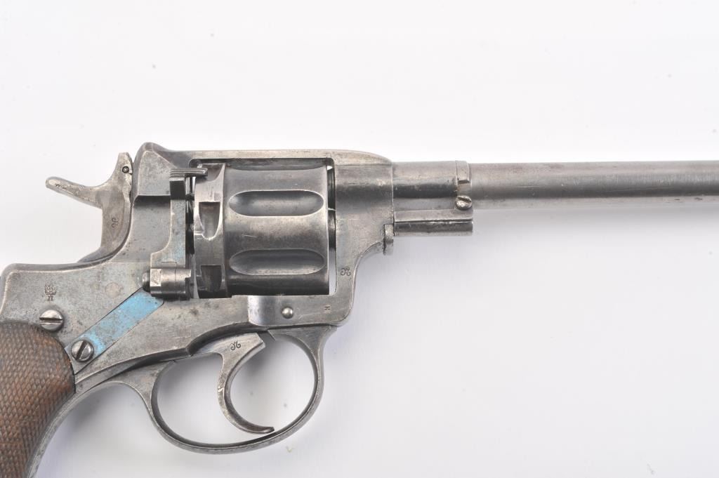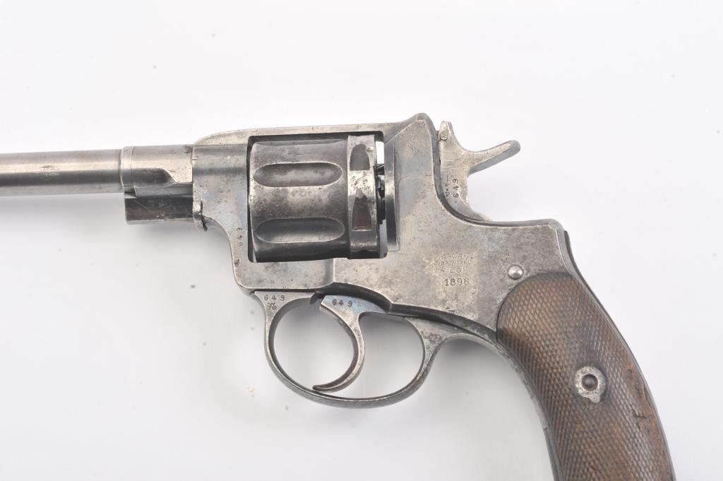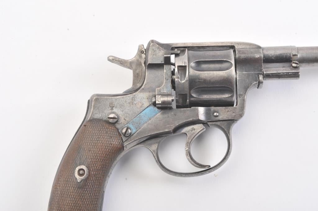 1896 Nagant revolver which has been re-barreled and converted to .22 caliber. Must be registered as modern due to no longer being in the original configuration. The pistol is in fair to good condition with some pitting and erosion and not working at the time of description. Est.: $75-$150. (C+R/PPT).
