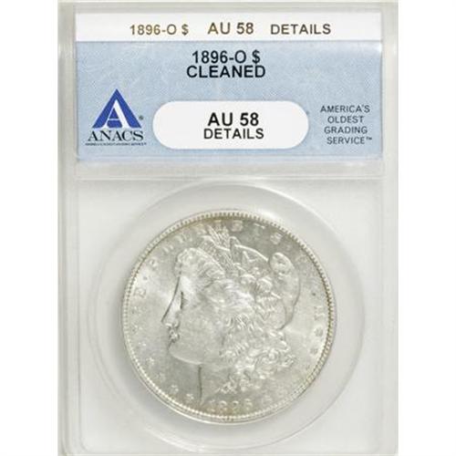 <B>1896-O $1 --Cleaned--ANACS. AU58 Details.</B></I> NGC Census: (994/988). PCGS Population (710/1134). Mintage: 4,900,000. Numismedia Wsl. Price for NGC/PCGS coin in AU58: $350. (#7242)<BR><BR><B>Coin Engraver:</B> George T. Morgan<BR><BR><b>Shipping:</b> Coins & Currency (<a target="_blank" href="http://www.heritageauctions.com/common/shipping.php">view shipping information</a>)