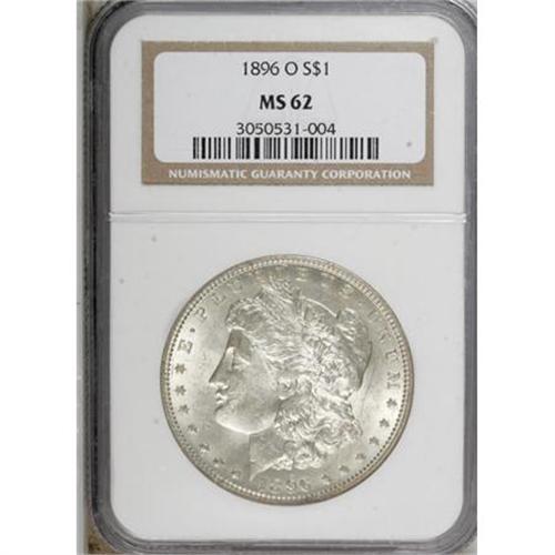 <B>1896-O $1 MS62 NGC.</B></I> For an 1896-O Morgan dollar, the luster, strike and overall eye appeal of the current example is actually quite nice. This issue is infamous for its poor production quality and typical lifelessness, but with patience an above average coin, such as this piece, can be located.<BR><BR><B>Coin Engraver:</B> George T. Morgan<BR><BR><b>Shipping:</b> Coins & Currency (<a target="_blank" href="http://www.heritageauctions.com/common/shipping.php">view shipping information</a>)