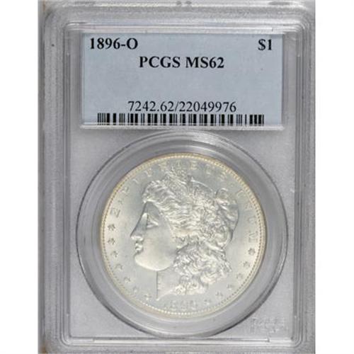 <B>1896-O $1 MS62 PCGS.</B></I> This well struck O-mint Morgan dollar has strong luster beneath thin layers of mother-of-pearl patina. The grade-defining abrasions on each side are generally wispy with little impact on the overall eye appeal. The 1896-O is plentiful in circulated grades, but Gems are extremely rare.<BR><BR><B>Coin Engraver:</B> George T. Morgan<BR><BR><b>Shipping:</b> Coins & Currency (<a target="_blank" href="http://www.heritageauctions.com/common/shipping.php">view shipping information</a>)