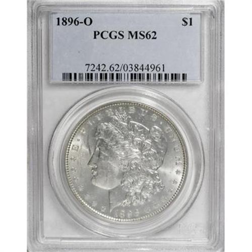 <B>1896-O $1 MS62 PCGS.</B></I> The 1896-O is one of the rarest Morgan dollars in strict Gem condition, and lower Mint State pieces are also difficult to locate. This brilliant, well struck, and lustrous example has the overall look of a higher grade, aside from a diagonal mark on the eagle's belly and a solitary graze on the upper left obverse field.<BR><I>From The Silver Spur Collection of Morgan Dollars.</B></I><BR><BR><B>Coin Engraver:</B> George T. Morgan<BR><BR><b>Shipping:</b> Coins & Currency (<a target="_blank" href="http://www.heritageauctions.com/common/shipping.php">view shipping information</a>)