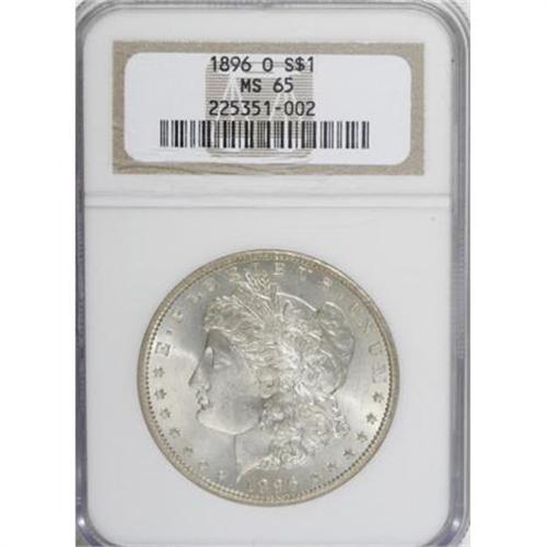 <B>1896-O $1 MS65 NGC.</B></I> While not particularly rare in circulated grades, the 1896-O dollar is elusive in all Mint State grades, and a major rarity in Gem quality. In <I>The Morgan and Peace Dollar Textbook,</B></I> Wayne Miller wrote: “No other Morgan dollar is as consistently deficient in luster, strike, and degree of surface abrasions as the 1896-O. A fully struck piece is rare; an 1896-O with minimum bagmarks is even more unusual. In the author’s opinion, the 1896-O is the rarest of all Morgan dollars in truly Gem condition.” In 1896, the New Orleans Mint coined 4,900,000 silver dollars, following several years of lean production. This mintage is only a little over 300,000 fewer silver dollars than had been struck in New Orleans during the previous four years combined. It is almost certainly the case that those four years of limited production created this condition rarity as nearly all of these pieces were actually placed in circulation in 1896. This issue provides an excellent illustration of the often confusing relationship between rarity and mintage. With a production of nearly 5 million coins, the ’96-O has a substantial mintage for Morgan dollar issue. There are nearly 50 different issues that have a lower mintage, including such issues as 1884-CC, 1897, 1898-O, and 1904-O, just to name a few, and none of these dates come even close to the rarity of the ’96-O in high grade. In the Morgan dollar series, rarity is not based on mintage, but on survival. For many dates, substantial portions of the mintage were placed in storage at the Treasury for several decades, until they were released in the 1960s, or even into the 1970s for some of the Carson City issues. Dates that were placed in storage are now the common dates in the series. Other dates, such as the 1896-O, that were released into circulation, are now the rarities or condition rarities of the series. In a few instances, such as the 1893-S, the rarity is explained by a combination of low mintage and release into circulation, and these are the dates that are keys to the series in all grades. The 1889-CC is another example. The condition rarity status of this date is similar to the 1901 silver dollar. Both are essentially common in circulated grades, but rare in Mint State grades, and when such pieces are found, they are usually at the lowest numerical levels. However, proof examples of 1901 are available to collectors, but not so for the 96-O. Dave Bowers writes: “Those who are edged out of buying a Gem Mint State 1901 can wink twice and buy a proof quickly, but the collector seeking an 1896-O has no such fallback possibility.” Van Allen and Mallis describe 18 different varieties, mostly minor date recutting of limited interest. This specimen appears to be an example of VAM-2, with the O mintmark tilted slightly to the left. The population of this date is limited, with just three MS65 pieces certified by NGC and none finer. For comparison, PCGS has graded one MS65 and two MS66. Therefore, the combined population of 1896-O silver dollars in Gem quality totals just six pieces, and this assumes that none of these represent resubmissions. Most examples of this issue are weakly struck with fairly dull luster, according to Van Allen and Mallis. They suggest that prooflike examples are extremely rare, and those that exist have little contrast. This atypical Gem specimen, with full mint brilliance and light gold toning, is bluntly struck over the ear as always seen. However, the rest of the detail is better than average for the date. All of the remaining hair strands are sharply defined. The reverse has full feather detail in the wings, and even the breast feathers are clearly delineated. Both sides have satiny silver luster that is exceptionally bright. The reverse is reflective with light contrast between the field and devices. With only the slightest grazes visible on the obverse, and none on the reverse, this Gem ’96-O dollar presents a high degree of aesthetic appeal for the connoisseur.<BR><I>From the Reuben Reinstein Collection.</B></I><BR><BR><b>Shipping:</b> Coins & Currency (<a target="_blank" href="http://www.heritageauctions.com/common/shipping.php">view shipping information</a>)