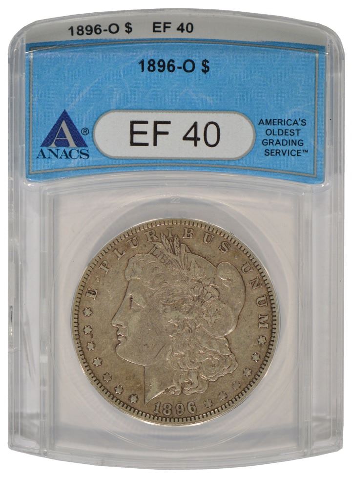 One 1896-O $1 Morgan Silver Dollar Coin ANACS EF40.
