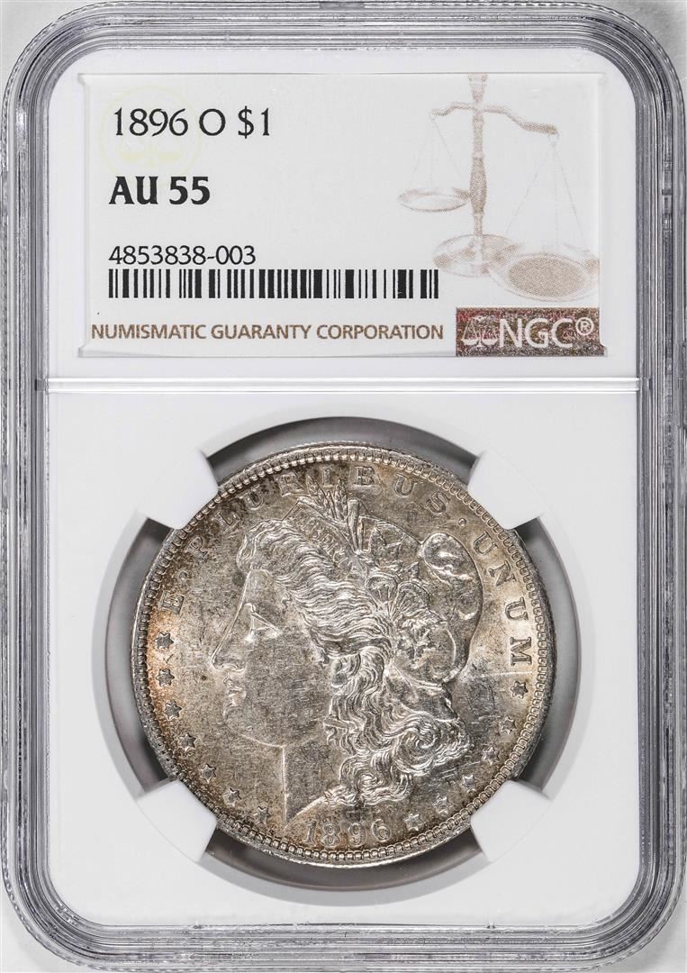 One 1896-O $1 Morgan Silver Dollar Coin NGC AU55. NGC Certified.