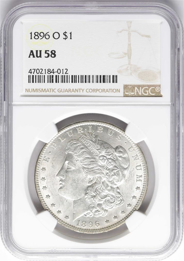 One 1896-O $1 Morgan Silver Dollar Coin NGC AU58. NGC Certified.