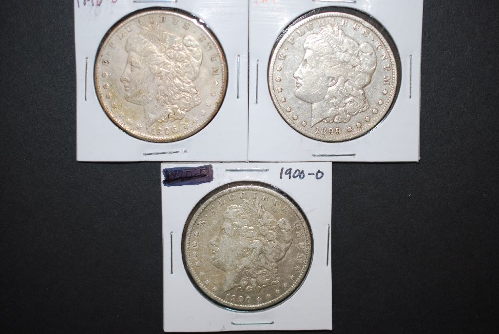 1896-O, 1899-O & 1900-O US Silver Morgan $1; Lot of 3; EST. $100-120
