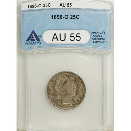 <B>1896-O 25C AU55 ANACS.</B></I> A pleasing Choice AU example of this often-elusive issue, well-defined overall with just a trace of wear on the highpoints. Soft blue-green and denim-gray toning drapes still-lustrous, modestly abraded surfaces.<BR><BR><b>Shipping:</b> Coins & Currency (<a target="_blank" href="http://www.heritageauctions.com/common/shipping.php">view shipping information</a>)