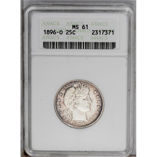 1896-O 25C MS61 ANACS. Satiny and lustrous with light 1896-O[25C] MS61 ANACS.