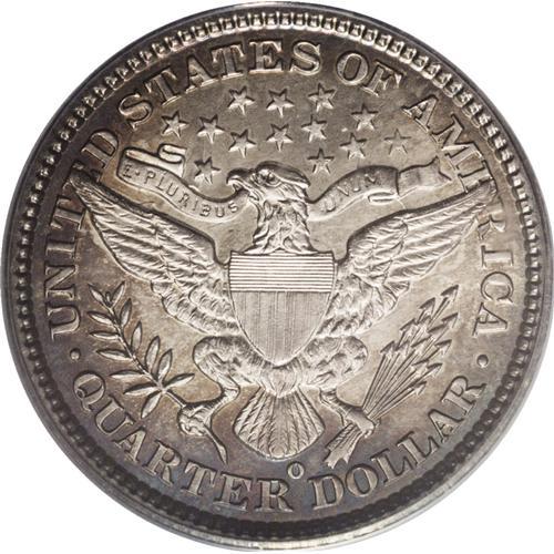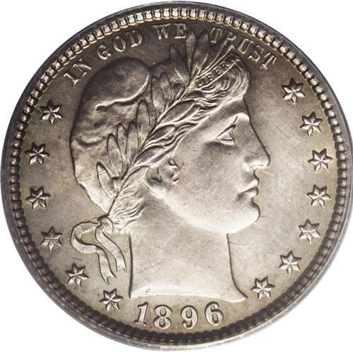 <B>1896-O 25C MS64 PCGS.</B></I> Ex: Friend Collection. A sharp, even strike prevails on this New Orleans issue. Even the upper right corner of the shield and adjacent feathers, areas that are often weak, are bold. Glowing luster underlies light tan-gold toning at the obverse periphery that is replaced by a blend of cobalt-blue, lavender, and deeper tan-gold around the reverse border. The grade is defined by wispy handling marks on the cheek. Population: 8 in 64, 7 finer (10/06).<BR><BR><b>Shipping:</b> Coin/Currency (<a target="_blank" href="http://www.heritageauctions.com/common/shipping.php">view shipping information</a>)