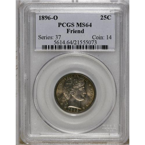 1896-O 25C MS64 PCGS. Ex: Friend Collection. A sharp,