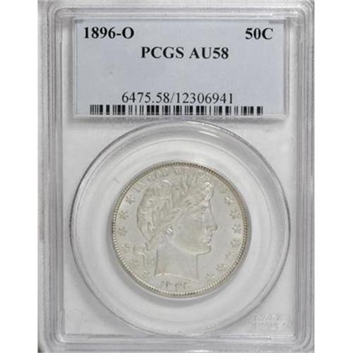 <B>1896-O 50C AU58 PCGS.</B></I> Flashy, mildly reflective fields supply much of the eye appeal for this near-Mint beauty. Slight silver-gray haze drapes much of the faintly marked surfaces. A great example of this challenging issue. Population: 2 in 58, 20 finer (3/08).<BR><BR><B>Coin Engraver:</B> Charles E. Barber<BR><BR><b>Shipping:</b> Coins & Currency (<a target="_blank" href="http://www.heritageauctions.com/common/shipping.php">view shipping information</a>)