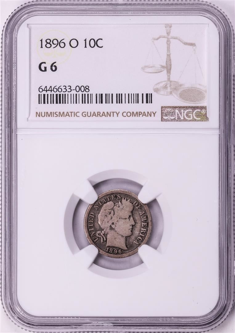 One 1896-O Barber Dime Coin NGC G6. NGC Certified.