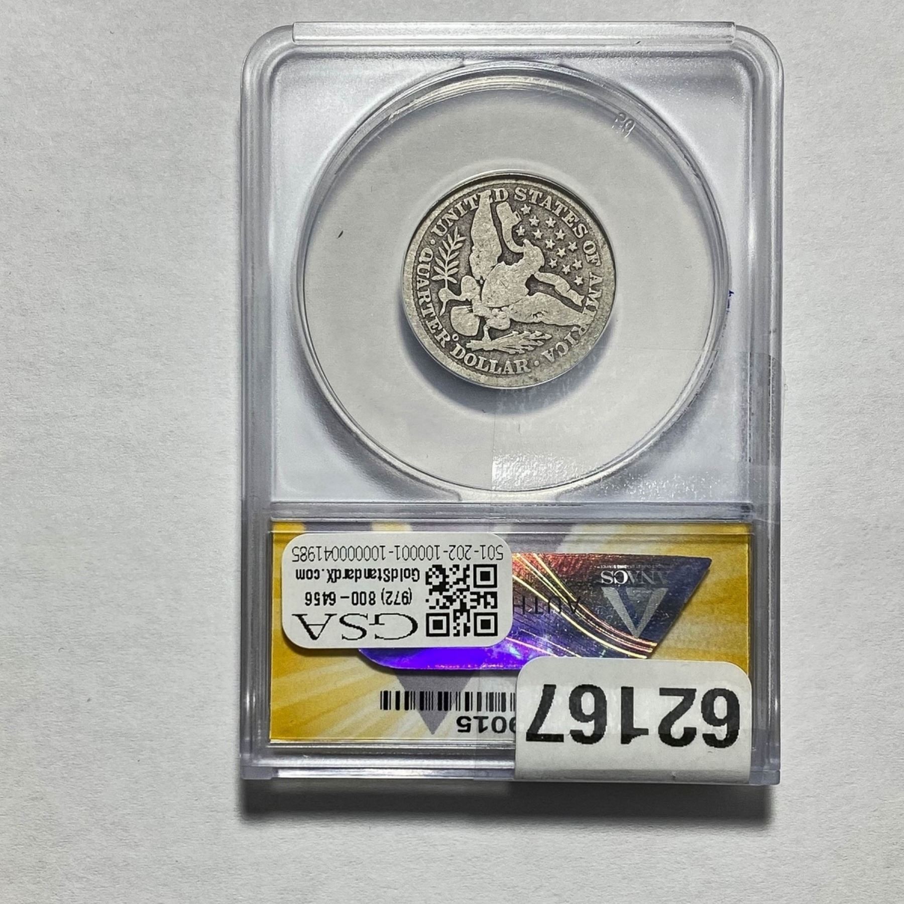 e. Coins sold referencing a third-party grading service are sold “AS IS” without any express or implied warranty, except for a guarantee by GSA that they are genuine. Removal or alteration of the holder, voids all of Bidder’s claims concerning that Product. Certain warranties may be available from the grading services and Bidders are referred to them for further details: Numismatic Guaranty Corporation (NGC), PO Box 4776, Sarasota, FL 34230, www.ngccoin.com/services/writtenguarantee.asp; Professional Coin Grading Services (PCGS), PO Box 9458, Newport Beach, CA 92658, www.pcgs.com/guarantee.html; ANACS, 6555 S. Kenton St., Ste. 303, Englewood, CO 80111; and Independent Coin Grading Co. (ICG), 7901 East Bellview, Ave., Suite 50, Englewood, CO 80111.