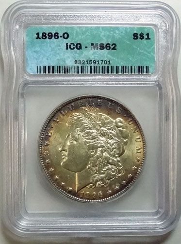 1896-O MORGAN DOLLAR ICG MS-62 COLOR!