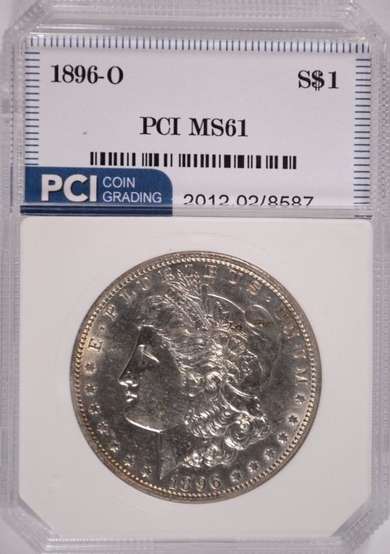 1896-O MORGAN SILVER DOLLAR, PCI GEM RARE IN MINT STATE, FROSTY WHITE COIN!