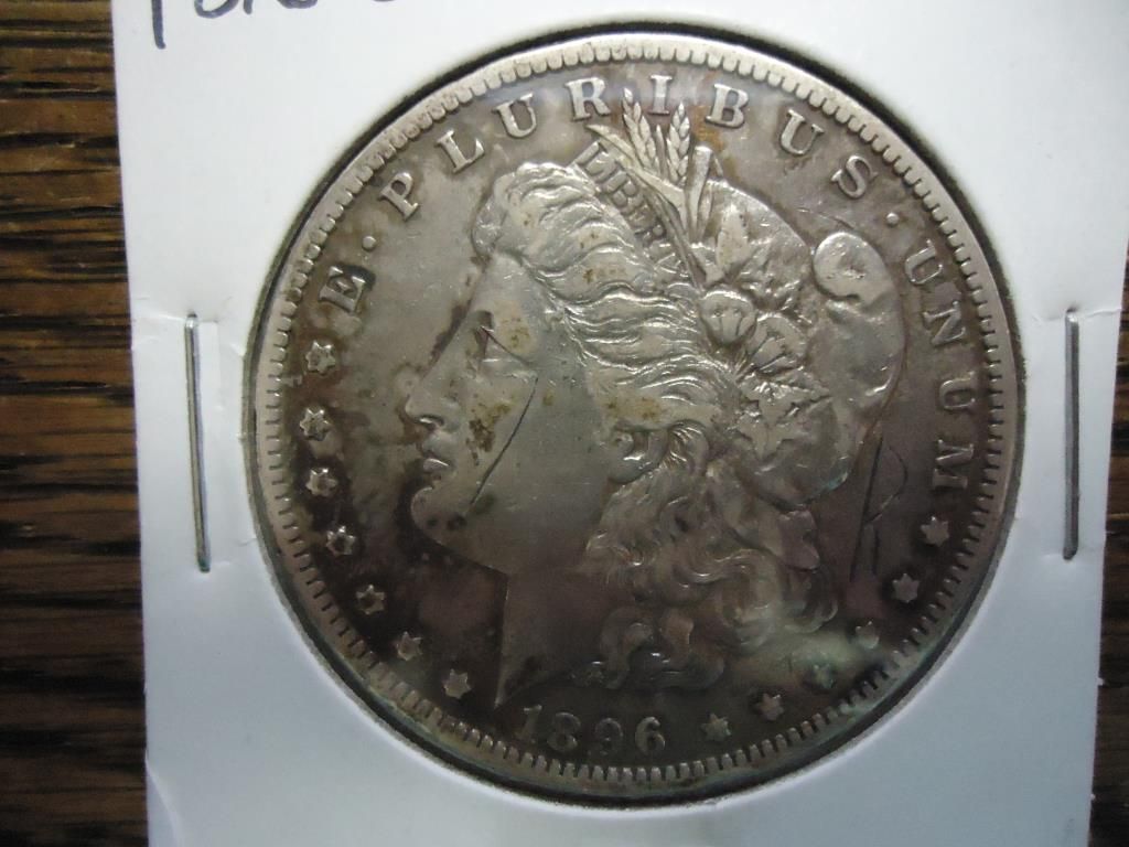 1896-O MORGAN SILVER DOLLAR SCRATCHED OBV.