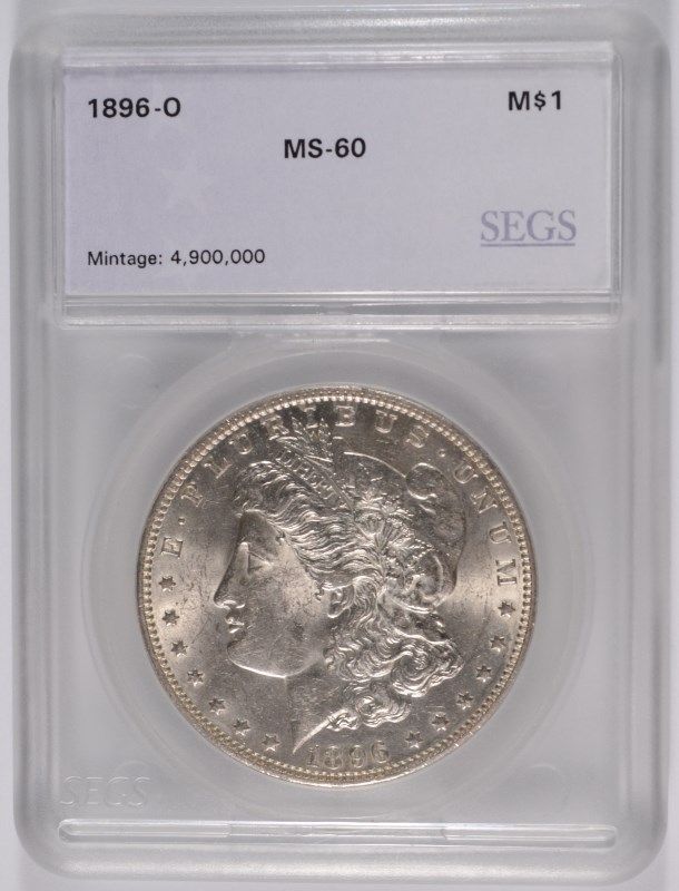 1896-O MORGAN SILVER DOLLAR, SEGS MS-60 RARE!