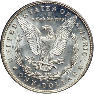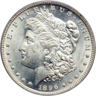 1896-O Morgan Dollar. PCGS graded MS-62 PQ. Well struck and mostly untoned. The attractive luster is smooth and glowing, with only a few stray marks noted. Centers show better than the more typical strike for '96-O, which often comes poorly defined on the hair and eagle breast (PCGS # 7242) .