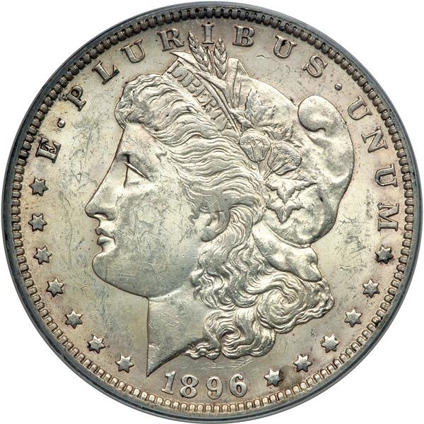 1896-O Morgan Dollar. PCGS graded AU-58. Frosty and lightly toned. Very close to Mint State (PCGS # 7242) .