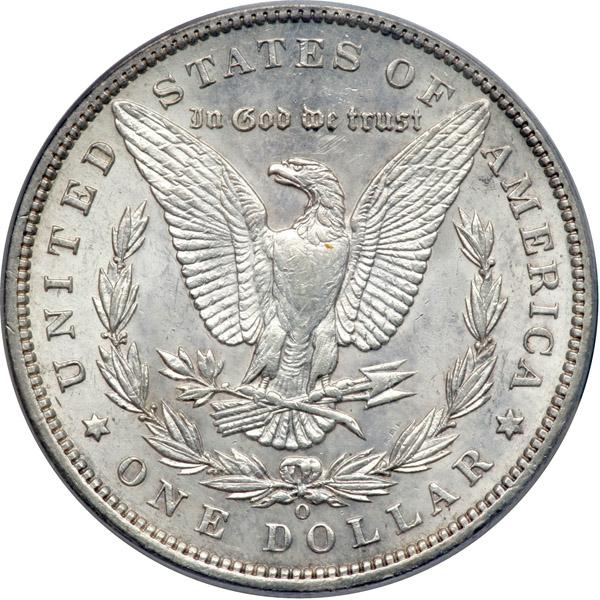 1896-O. PCGS graded AU-58. Frosty and untoned, very close to full Mint State (PCGS # 7242) .
