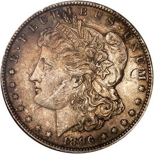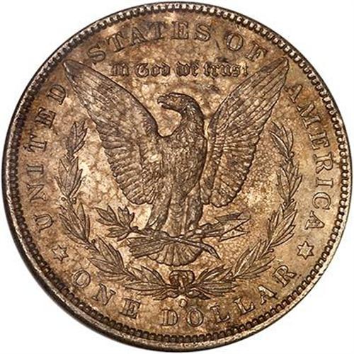 Toned with a few scuffs in the frost on the cheek. The reverse has a dappled effect in the russet gray toning like the skin of an alien being from a Robert Heinlein story. Nonetheless, a scarce date and mint combination. (#7242)