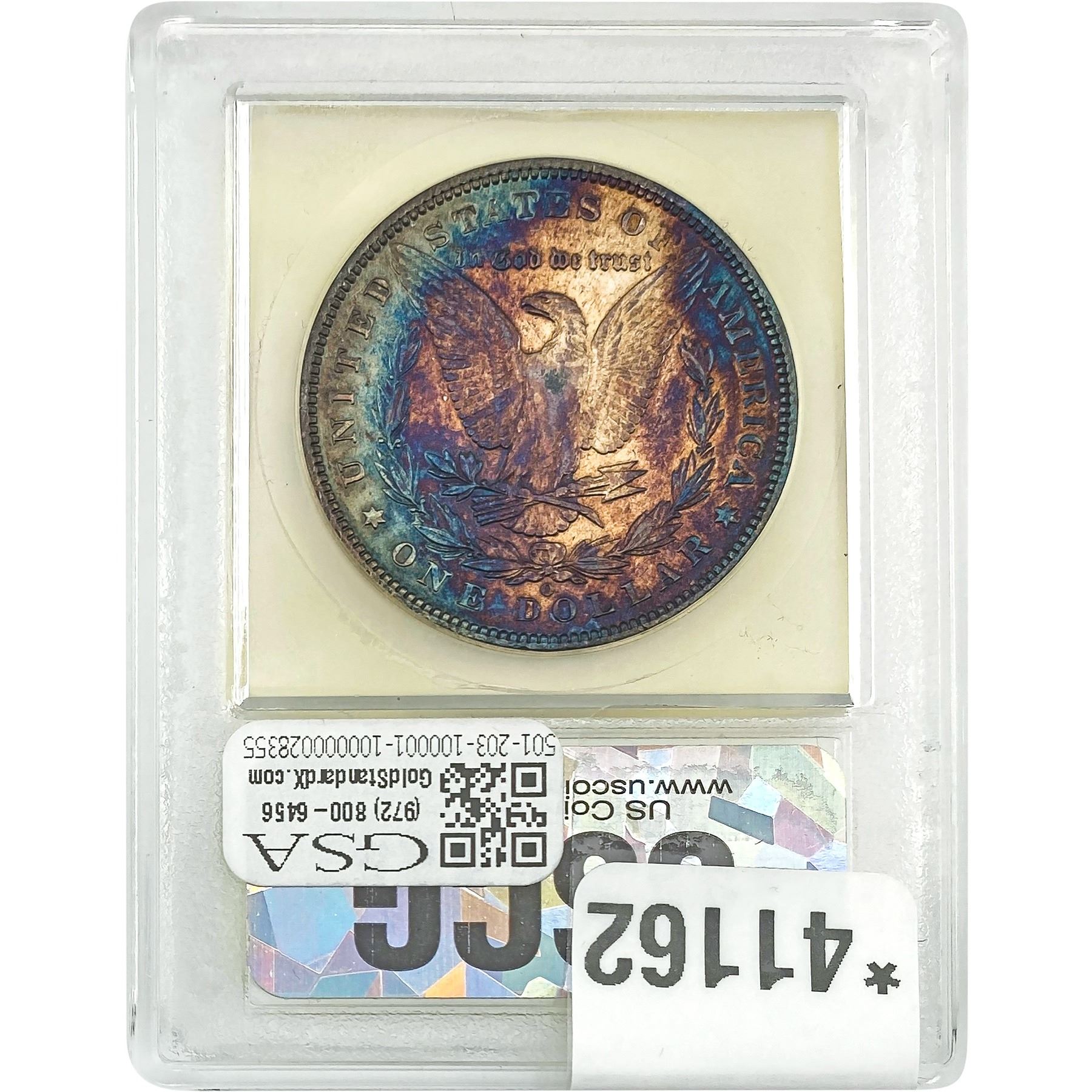 e. Coins sold referencing a third-party grading service are sold “AS IS” without any express or implied warranty, except for a guarantee by GSA that they are genuine. Removal or alteration of the holder, voids all of Bidder’s claims concerning that Product. Certain warranties may be available from the grading services and Bidders are referred to them for further details: Numismatic Guaranty Corporation (NGC), PO Box 4776, Sarasota, FL 34230, www.ngccoin.com/services/writtenguarantee.asp; Professional Coin Grading Services (PCGS), PO Box 9458, Newport Beach, CA 92658, www.pcgs.com/guarantee.html; ANACS, 6555 S. Kenton St., Ste. 303, Englewood, CO 80111; and Independent Coin Grading Co. (ICG), 7901 East Bellview, Ave., Suite 50, Englewood, CO 80111.