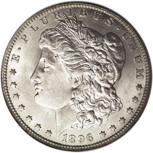 <B>1896-O<img border='0' src='http://www.heritagecoins.com/images/star.gif' width=10 height=10>$1> MS61 NGC.</B></I> Essentially untoned with subdued, satiny brilliance. Well struck with a lack of serious abrasions and an overall effect that suggests a higher grade. An affordable Mint State example of this conditionally elusive O-mint Morgan.