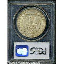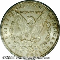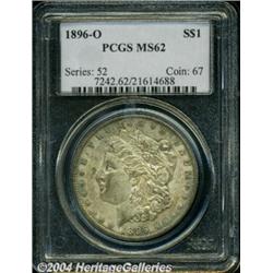 <B>1896-O<S$1> MS62 PCGS.</B></I> Moderately toned golden-steel surfaces are very well defined and display intermittent flashes of emerald-green iridescence about the obverse border. The scarcer 1896-O Morgan is particularly challenging once it reaches the Select level. <BR><BR><B>Important notice:</B> Heritage usually auctions material at the rate of 200-250 lots per hour. On some occasions eBay Live bid software or the Internet may not be able to keep up with the pace of the auction. We recommend placing a realistic absentee bid now as insurance to avoid disappointment. Occasionally the auctioneer may eliminate or reject an eBay Live bid, and the auctioneer may also reopen a lot after the close of the eBay live bidding (usually because we missed an audience bid), and may reject your bid even if it shows you as the winning bidder. By bidding via eBay Live, you agree that Heritage may award the lot to another bidder at its sole discretion under the circumstances described above or any other reasonable circumstances. Since eBay bids are not shown to us until we open the lot on the floor, we treat those bids just like floor bids. In most cases the floor responds before the eBay bid is presented to us, due to Internet lag time, so for consistency we have made it a policy that floor bids are always considered first over tie eBay live bids. Also please note that all Heritage lots purchased through eBay Live carry a 20% Buyer's Premium. Please make sure you read the Terms and Conditions before you bid. </span></font></tr></table></td></tr></table>
