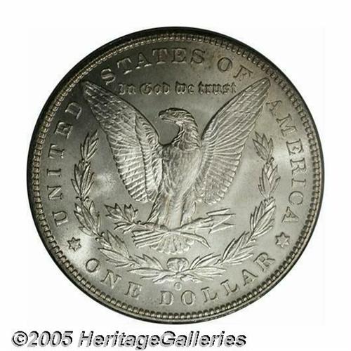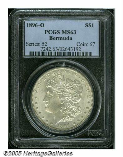 <B>1896-O<S$1> MS63 PCGS.</B></I> Ex: Bermuda Collection. Satiny and quite lustrous with a hint of toning. The strike is soft at the centers, but slightly better than normal for the issue. The surfaces are exceptionally clean for the assigned grade with virtually no perceptible abrasions. This is one of the more visually pleasing examples of this conditionally rare date that one might see, with some claims to a higher grade.