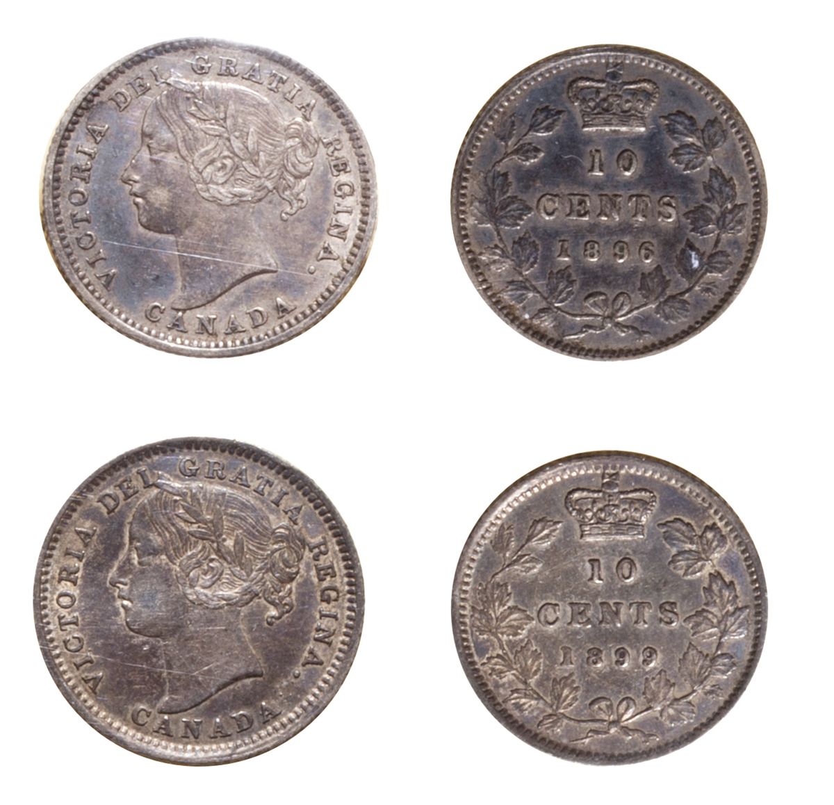 1896. Obv. port. #6. ICCS Very Fine-30; 1899. Large 99. ICCS Very Fine-30. Both with medium heavy toning.