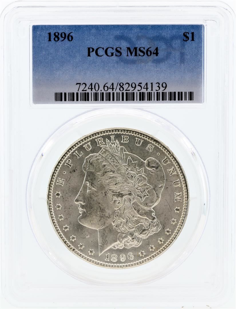 One 1896 PCGS MS64 Morgan Silver Dollar.