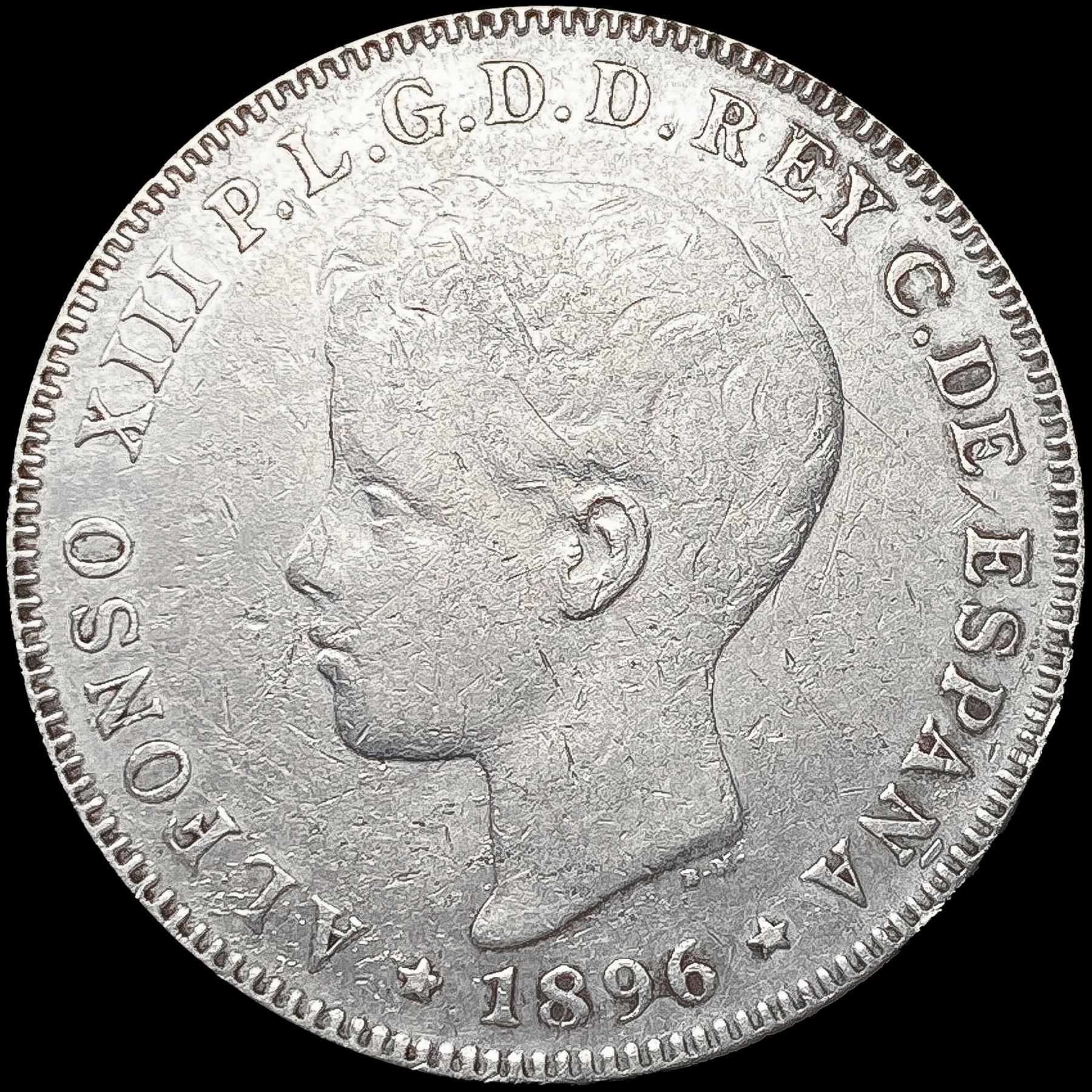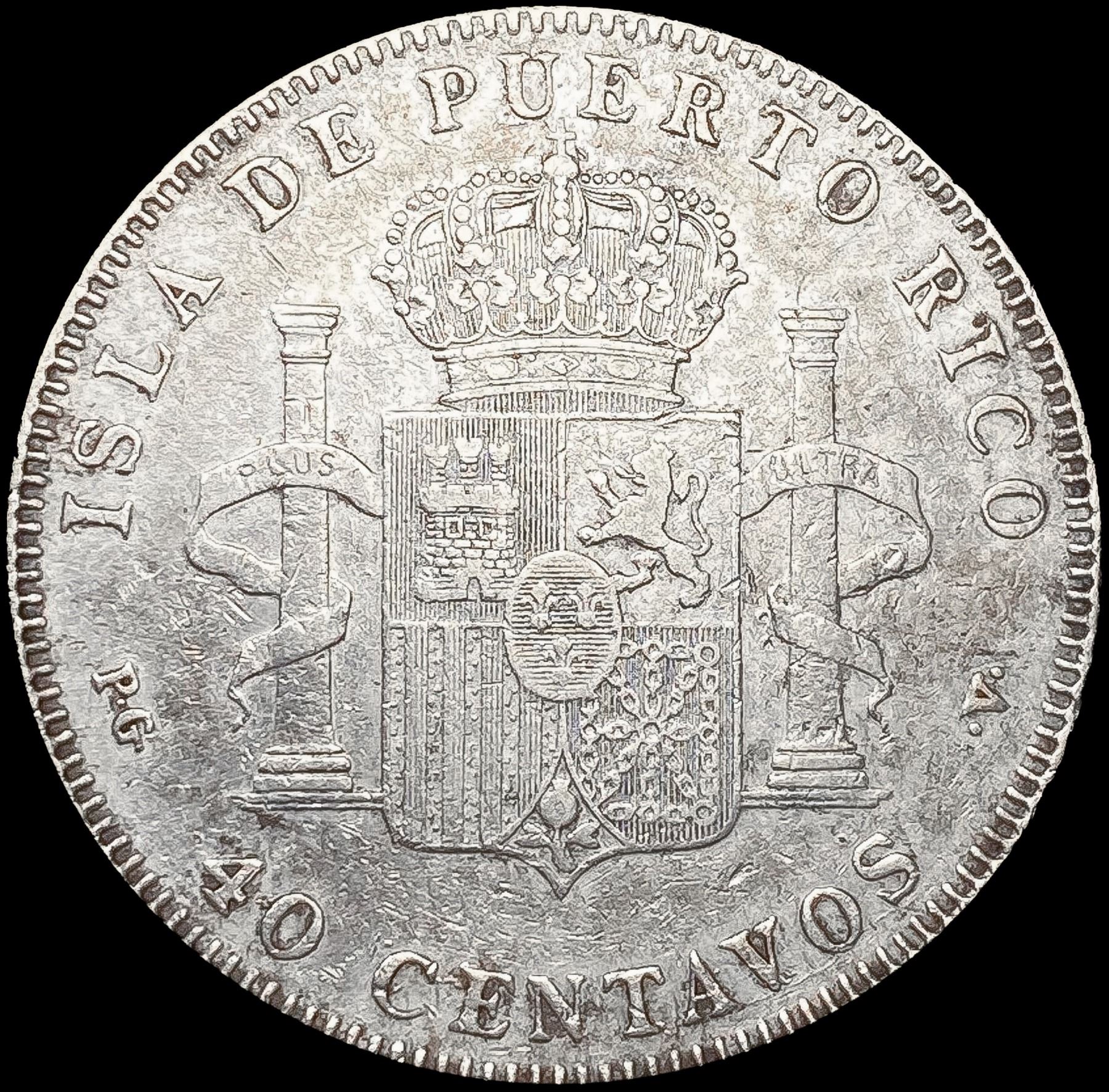 1896 Puerto Rico Silver 40 Centavos ABOUT UNCIRCULATED