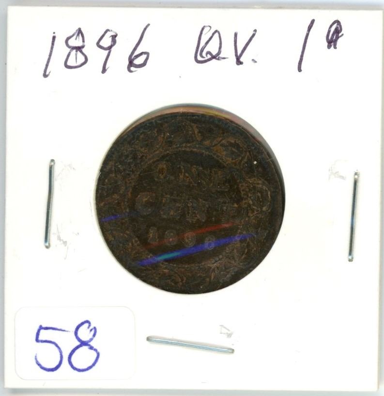 1896 Q.V. large 1¢ coin