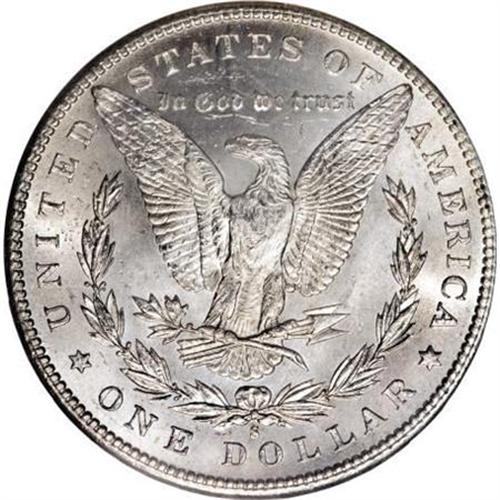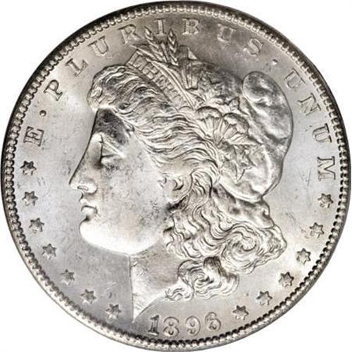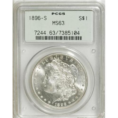 <B>1896-S $1 MS63 PCGS.</B></I> VAM-8. The mintmark is lightly repunched. This nearly untoned silver dollar is lustrous and carefully preserved. The hair above the ear is slightly soft, but most details are sharp. Unlike its Philadelphia Mint counterpart, the 1896-S is very scarce, even in circulated grades. Encased in an old green label holder.<BR><BR><B>Coin Engraver:</B> George T. Morgan<BR><BR><b>Shipping:</b> Coins & Currency (<a target="_blank" href="http://www.heritageauctions.com/common/shipping.php">view shipping information</a>)