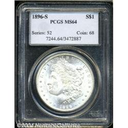 <table><tbody><tr><td><table> <TR><TD width="100%"><TABLE cellSpacing=1 cellPadding=3 width="100%" border=0><TBODY><TR><TD width="100%" bgColor=#79735c><FONT face=arial color=#ffffff size=3><B>Description</B> </FONT></TD></TR><TR><TD width="100%" bgColor=#ffffff><FONT face=arial size=2><B>1896-S $1 MS64 PCGS.</B></I> A similarly well preserved '96-S, this example displays soft, frosted luster and average-or-better sharpness in the centers, being minutely affected by horizontal roller marks on the eagle's breast feathers.<BR><I>From the Dylan Elijah Collection of Morgan Dollars.</B></I> </FONT></TD></TR></TBODY></TABLE></TD></TR></TBODY></TABLE><BR><A name=PricesRealized></A><TABLE cellSpacing=0 cellPadding=0 width="100%" bgColor=#000000 border=0><TBODY><TR><TD width="100%"><TABLE cellSpacing=1 cellPadding=3 width="100%" border=0><TBODY><TR><TD width="100%" bgColor=#79735c><A name=PR><FONT face=arial color=#ffffff size=3><B>Previous Prices from Heritage Auctions</B> </FONT></A></TD></TR><TR><TD bgColor=#f6f6ed><TABLE cellSpacing=0 cellPadding=0 width="100%" border=1><TBODY><TR><TD align=middle width="33%"><B>Date</B></TD><TD align=middle width="33%"><B>Service</B></TD><TD align=middle width="33%"><B>Price</B></TD></TR><TR bgColor=whitesmoke><TD width="33%"><B>10/14/2003</B></TD><TD width="33%">PCGS</TD><TD width="33%">$2,127.50</TD></TR><TR bgColor=whitesmoke><TD width="33%"><B>10/14/2003</B></TD><TD width="33%">PCGS</TD><TD width="33%">$2,127.50</TD></TR><TR bgColor=whitesmoke><TD width="33%"><B>07/22/2003</B></TD><TD width="33%">PCGS</TD><TD width="33%">$1,955.00</TD></TR><TR bgColor=whitesmoke><TD width="33%"><B>03/25/2003</B></TD><TD width="33%">PCGS</TD><TD width="33%">$2,375.90</TD></TR><TR bgColor=whitesmoke><TD width="33%"><B>03/25/2003</B></TD><TD width="33%">PCGS</TD><TD width="33%">$2,375.90</TD></TR><TR bgColor=whitesmoke><TD width="33%"><B>06/18/2002</B></TD><TD width="33%">PCGS</TD><TD width="33%">$1,955.00</TD></TR><TR bgColor=whitesmoke><TD width="33%"><B>04/30/2002</B></TD><TD width="33%">PCGS</TD><TD width="33%">$2,012.50</TD></TR><TR bgColor=whitesmoke><TD width="33%"><B>04/30/2002</B></TD><TD width="33%">PCGS</TD><TD width="33%">$2,012.50</TD></TR><TR bgColor=whitesmoke><TD width="33%"><B>12/25/2001</B></TD><TD width="33%">PCGS</TD><TD width="33%">$1,950.00</TD></TR><TR bgColor=whitesmoke><TD width="33%"><B>08/21/2001</B></TD><TD width="33%">PCGS</TD><TD width="33%">$1,950.00</TD></TR><TR bgColor=whitesmoke><TD width="33%"><B>08/21/2001</B></TD><TD width="33%">PCGS</TD><TD width="33%">$1,950.00</TD></TR><TR bgColor=whitesmoke><TD width="33%"><B>01/07/2004</B></TD><TD width="33%">NGC</TD><TD width="33%">$2,587.50</TD></TR><TR bgColor=whitesmoke><TD width="33%"><B>01/07/2004</B></TD><TD width="33%">PCGS</TD><TD width="33%">$2,645.00</TD></TR><TR bgColor=whitesmoke><TD width="33%"><B>01/07/2004</B></TD><TD width="33%">PCGS</TD><TD width="33%">$2,645.00</TD></TR><TR bgColor=whitesmoke><TD width="33%"><B>11/07/2003</B></TD><TD width="33%">PCGS</TD><TD width="33%">$2,645.00</TD></TR><TR bgColor=whitesmoke><TD width="33%"><B>08/06/2003</B></TD><TD width="33%">PCGS</TD><TD width="33%">$2,127.50</TD></TR><TR bgColor=whitesmoke><TD width="33%"><B>08/06/2003</B></TD><TD width="33%">PCGS</TD><TD width="33%">$2,127.50</TD></TR><TR bgColor=whitesmoke><TD width="33%"><B>05/31/2003</B></TD><TD width="33%">PCGS</TD><TD width="33%">$2,530.00</TD></TR><TR bgColor=whitesmoke><TD width="33%"><B>01/11/2003</B></TD><TD width="33%">PCGS</TD><TD width="33%">$2,875.00</TD></TR><TR bgColor=whitesmoke><TD width="33%"><B>01/11/2003</B></TD><TD width="33%">PCGS</TD><TD width="33%">$2,875.00</TD></TR><TR bgColor=whitesmoke><TD width="33%"><B>01/11/2003</B></TD><TD width="33%">PCGS</TD><TD width="33%">$2,300.00</TD></TR><TR bgColor=whitesmoke><TD width="33%"><B>11/23/2002</B></TD><TD width="33%">PCGS</TD><TD width="33%">$1,955.00</TD></TR><TR bgColor=whitesmoke><TD width="33%"><B>11/23/2002</B></TD><TD width="33%">PCGS</TD><TD width="33%">$1,955.00</TD></TR><TR bgColor=whitesmoke><TD width="33%"><B>04/27/2002</B></TD><TD width="33%">NGC</TD><TD width="33%">$1,955.00</TD></TR><TR bgColor=whitesmoke><TD width="33%"><B>01/12/2002</B></TD><TD width="33%">PCGS</TD><TD width="33%">$1,782.50</TD></TR><TR bgColor=whitesmoke><TD width="33%"><B>01/12/2002</B></TD><TD width="33%">PCGS</TD><TD width="33%">$1,782.50</TD></TR><TR bgColor=whitesmoke><TD width="33%"><B>11/15/2001</B></TD><TD width="33%">NGC</TD><TD width="33%">$1,782.50</TD></TR><TR bgColor=whitesmoke><TD width="33%"><B>10/06/2001</B></TD><TD width="33%">PCGS</TD><TD width="33%">$1,840.00</TD></TR><TR bgColor=whitesmoke><TD width="33%"><B>10/06/2001</B></TD><TD width="33%">PCGS</TD><TD width="33%">$1,840.00</TD></TR><TR bgColor=whitesmoke><TD width="33%"><B>08/08/2001</B></TD><TD width="33%">PCGS</TD><TD width="33%">$2,070.00</TD></TR><TR bgColor=whitesmoke><TD width="33%"><B>01/05/2001</B></TD><TD width="33%">NGC</TD><TD width="33%">$1,437.50</TD></TR><TR bgColor=whitesmoke><TD width="33%"><B>01/05/2001</B></TD><TD width="33%">NGC</TD><TD width="33%">$1,437.50</TD></TR><TR bgColor=whitesmoke><TD width="33%"><B>05/06/2000</B></TD><TD width="33%">PCGS</TD><TD width="33%">$1,782.50</TD></TR><TR bgColor=whitesmoke><TD width="33%"><B>02/11/2000</B></TD><TD width="33%">PCGS</TD><TD width="33%">$1,955.00</TD></TR><TR bgColor=whitesmoke><TD width="33%"><B>02/11/2000</B></TD><TD width="33%">PCGS</TD><TD width="33%">$1,955.00</TD></TR><TR bgColor=whitesmoke><TD width="33%"><B>01/07/2000</B></TD><TD width="33%">PCGS</TD><TD width="33%">$2,300.00</TD></TR><TR bgColor=whitesmoke><TD width="33%"><B>11/18/1999</B></TD><TD width="33%">PCGS</TD><TD width="33%">$2,098.75</TD></TR><TR bgColor=whitesmoke><TD width="33%"><B>11/18/1999</B></TD><TD width="33%">PCGS</TD><TD width="33%">$2,098.75</TD></TR><TR bgColor=whitesmoke><TD width="33%"><B>06/04/1999</B></TD><TD width="33%">PCGS</TD><TD width="33%">$2,070.00</TD></TR><TR bgColor=whitesmoke><TD width="33%"><B>02/12/1