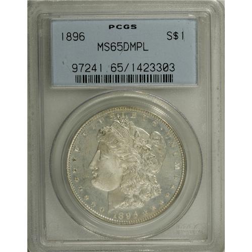 <B>1896 S$1 MS65 Deep Mirror Prooflike PCGS.</B></I> Light hazy toning throughout with light frosting on the devices. A scarcer issue in Gem condition.<BR><BR><b>Shipping:</b> Coin/Currency (<a target="_blank" href="http://www.heritageauctions.com/common/shipping.php">view shipping information</a>)