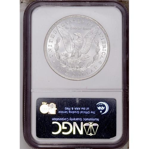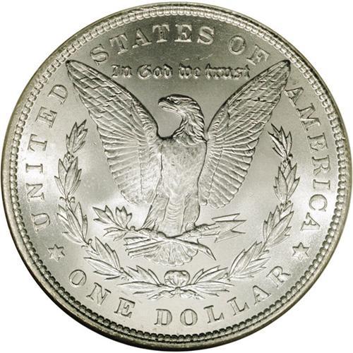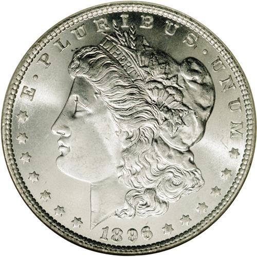 <B>1896<img border='0' src='http://www.heritagecoins.com/images/star.gif' width=10 height=10>$1> MS67 NGC.</B></I> An impressive beauty with fully brilliant and lustrous silver surfaces. Both sides have a frosty appearance, like ice on a window in the wintertime. Although it is a common date, the 1896 dollar in Superb Gem quality is certainly elusive. Census: 35 in 67, 0 finer (1/06).