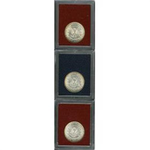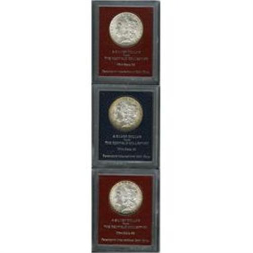 <B>1896<img border='0' src='http://www.heritagecoins.com/images/star.gif' width=10 height=10>$1> Morgan Dollar MS65 Paramount International (MS63),</B></I> golden-brown freckles adorn the rims; <B>1897 Morgan Dollar MS60 Paramount International (MS63),</B></I> orange and blue-green borders frame untoned centers; and a <B>1897 Morgan Dollar MS65 Paramount International (MS63),</B></I> tan-gold and ice-blue margins cede to brilliant fields and devices. All three pieces are Ex: Redfield Collection.