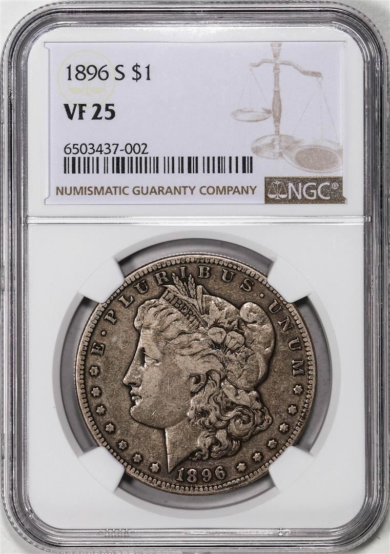 One 1896-S $1 Morgan Silver Dollar Coin NGC VF25. NGC Certified.