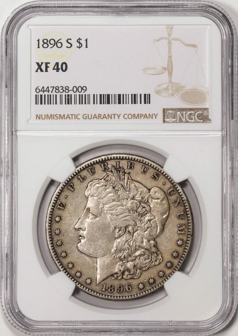One 1896-S $1 Morgan Silver Dollar Coin NGC XF40. NGC Certified.